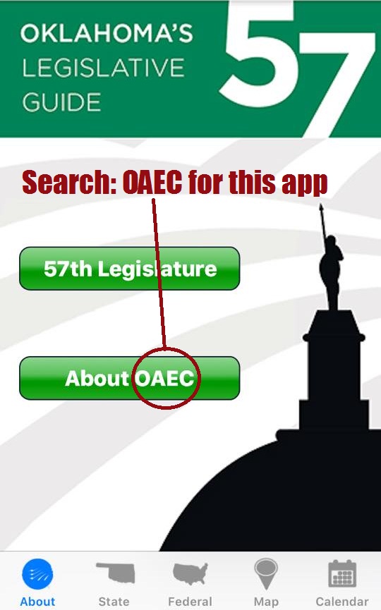 Go to the Google or Apple Play/App store and search for OAEC (Oklahoma Legislative Guide). It’s free and a valuable resource.