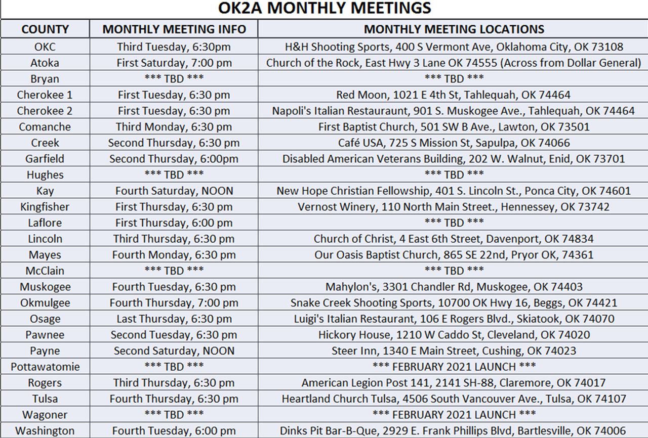 Don’t have a chapter in your County?… Start one!… just like those who decided to do in their County. The response and attendance has been worthwhile and chapters are growing. Just contact OK2A through the email address, ok2aassociation@gmail.com
